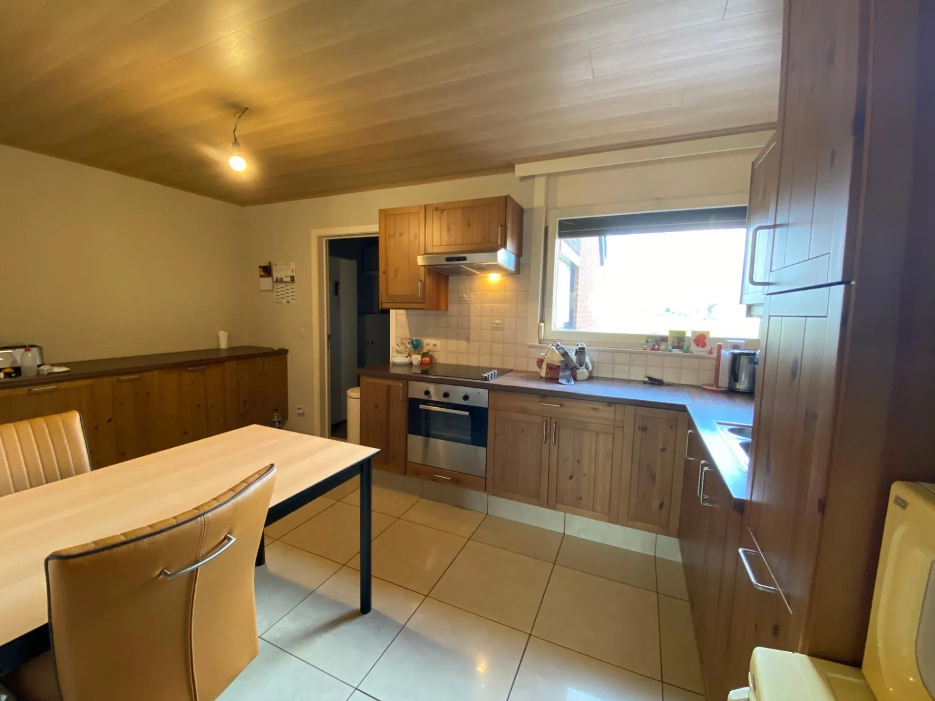 Gelijkvloers: inkomhal met gastentoilet - ruime lichtrijke leefruimte met aansluitende veranda - halfopen ingerichte keuken - ruime garage met automatische sectionaalpoort - wasplaats.