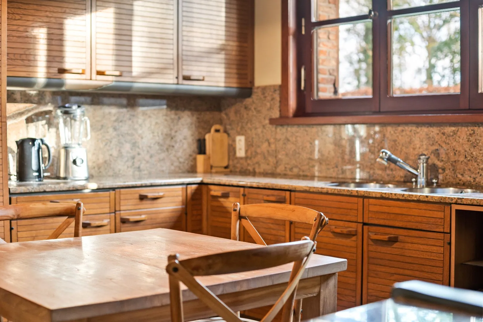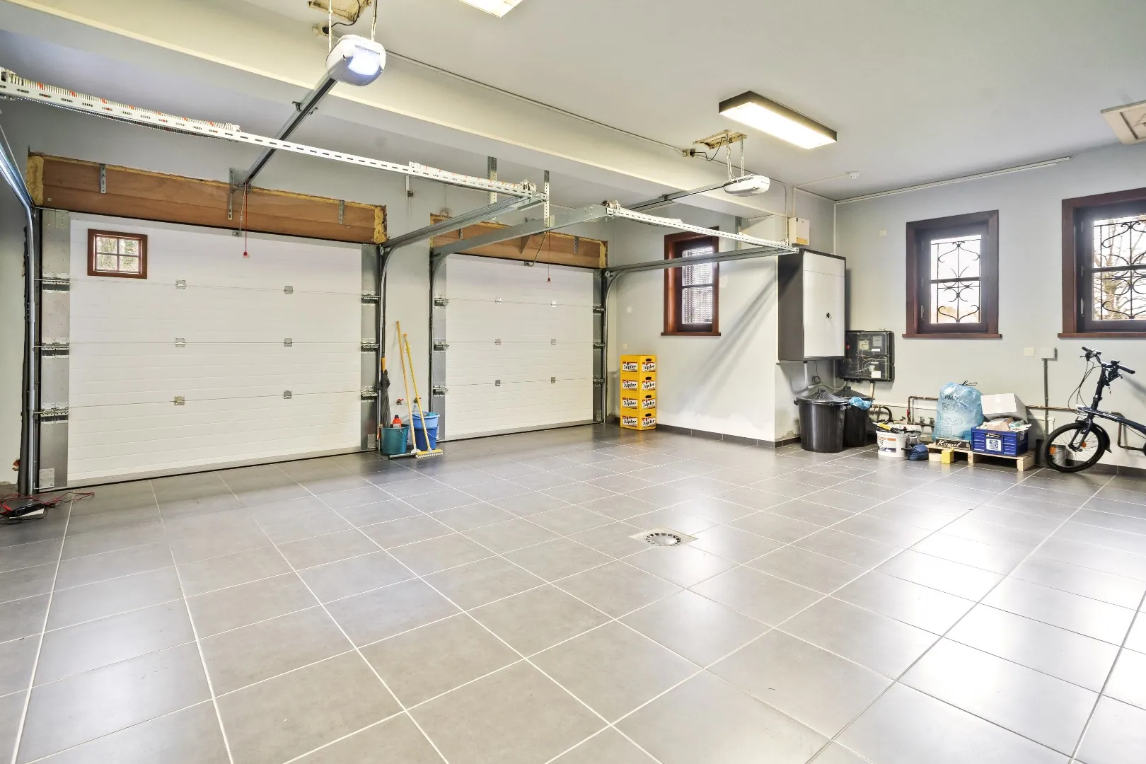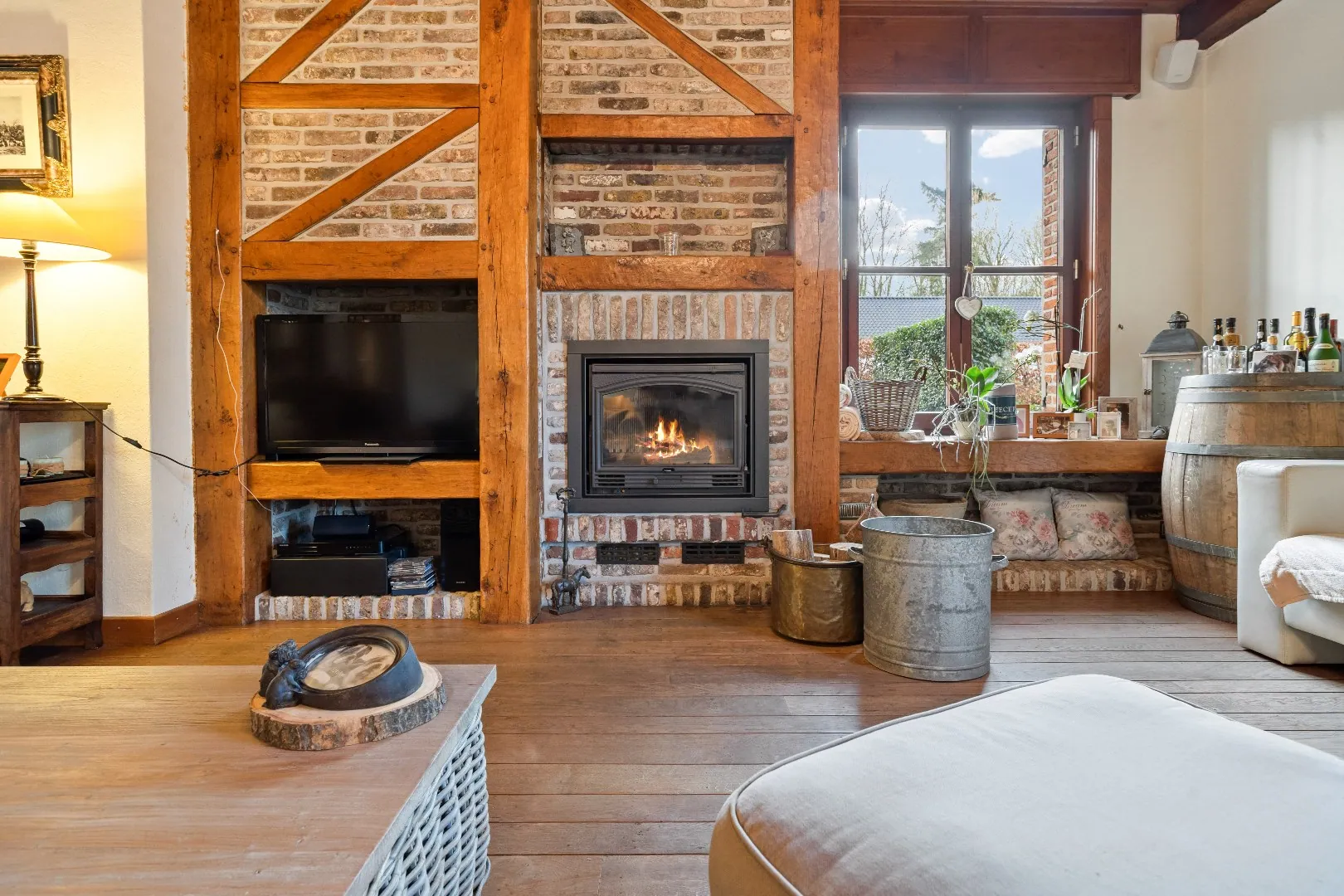 Gelijkvloers: Riante inkomhal - gastentoilet - ontvangstruimte/bureau - Zongerichte, rustieke leefruimte - ingerichte keuken - bijkeuken - berging - nachthal - 2 ruime slaapkamers - badkamer - apart toilet - dubbele garage