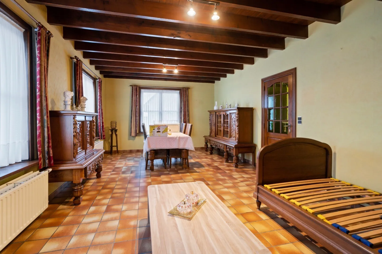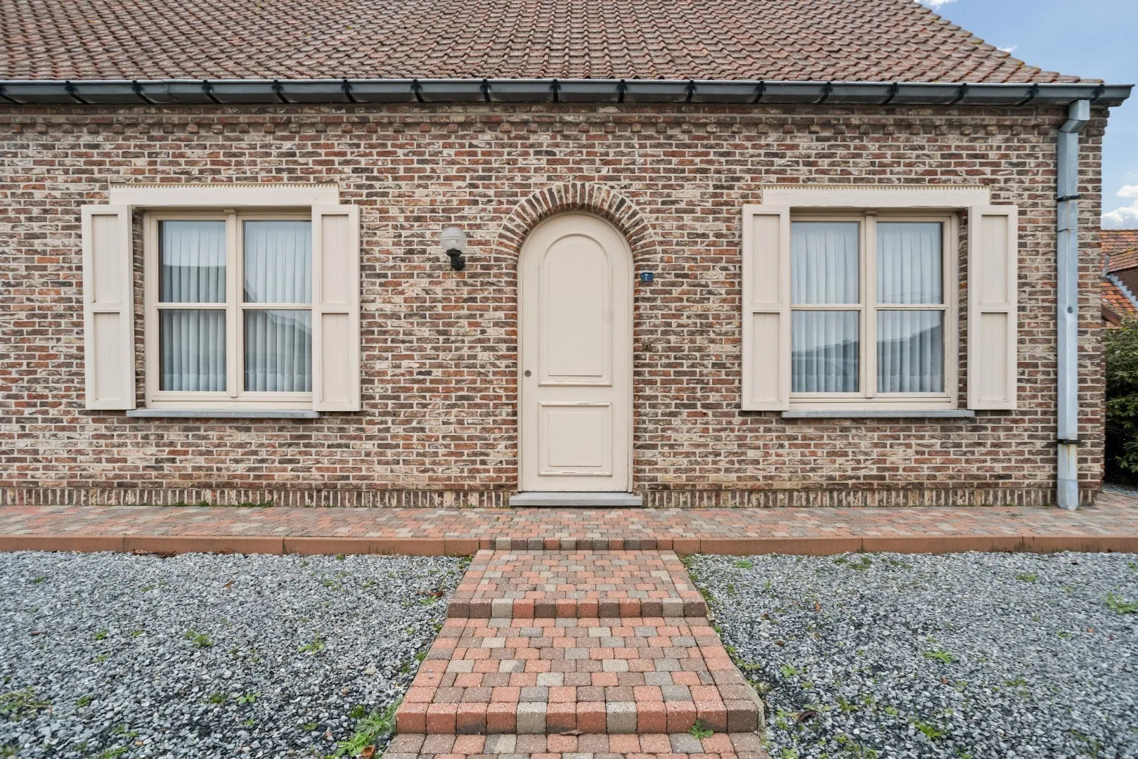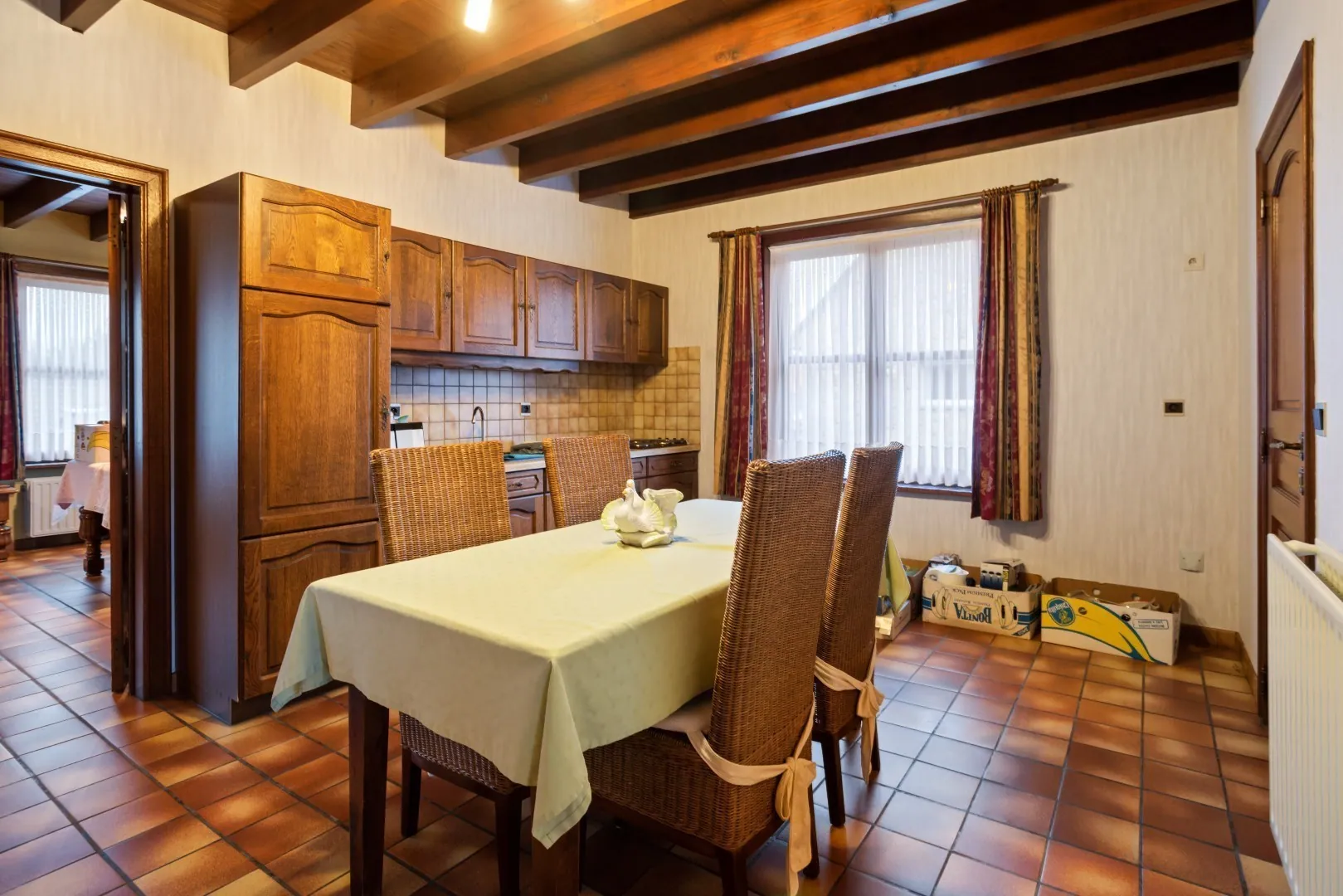 Gelijkvloers: Inkomhal - lichtrijke leefruimte - ingerichte leefkeuken - badkamer met ligbad en wastafel - achterinkom - gastentoilet - garage (momenteel ingericht als tweede leefruimte)