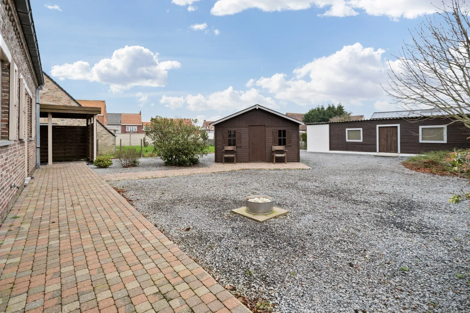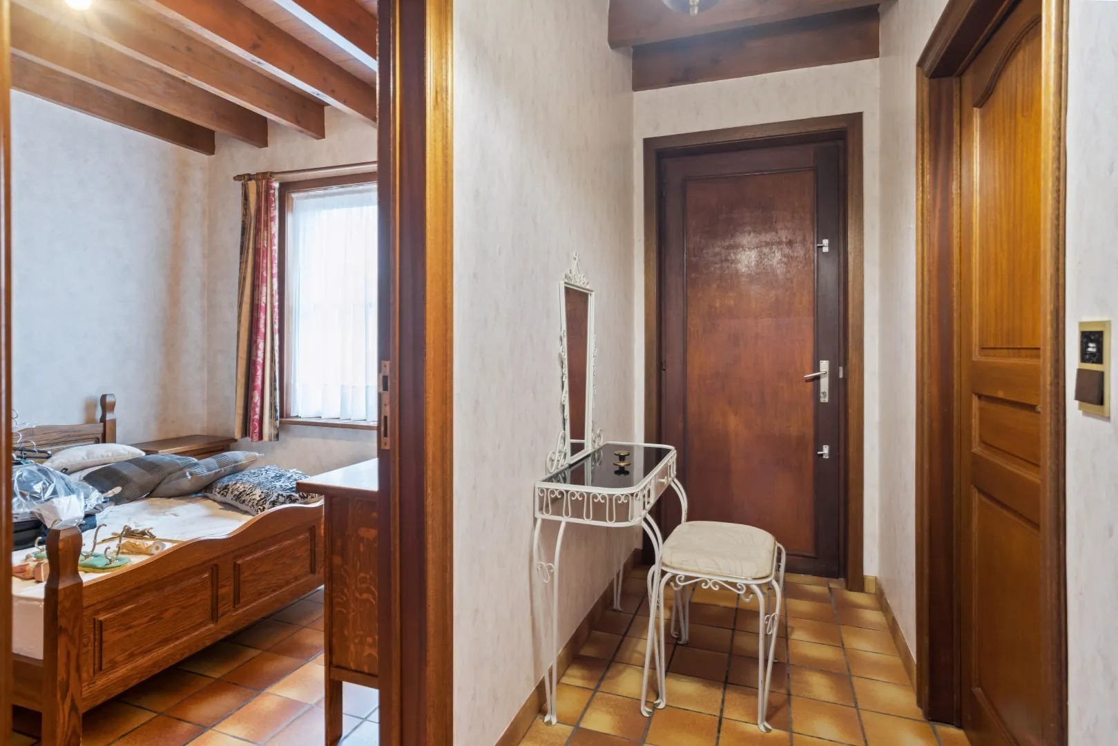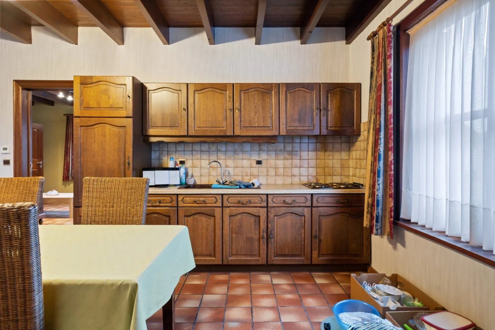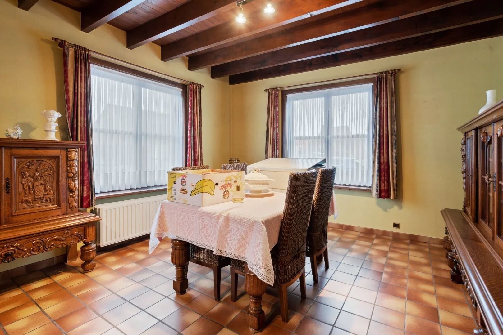 Gelijkvloers: Inkomhal - lichtrijke leefruimte - ingerichte leefkeuken - badkamer met ligbad en wastafel - achterinkom - gastentoilet - garage (momenteel ingericht als tweede leefruimte)