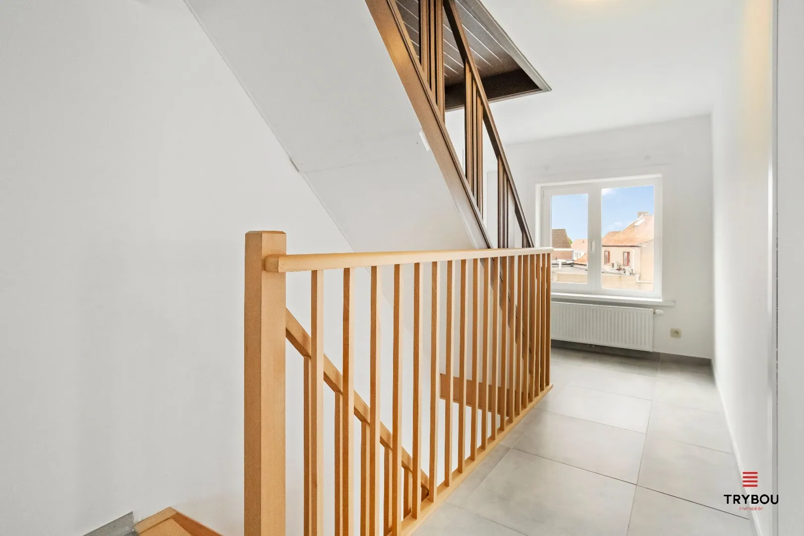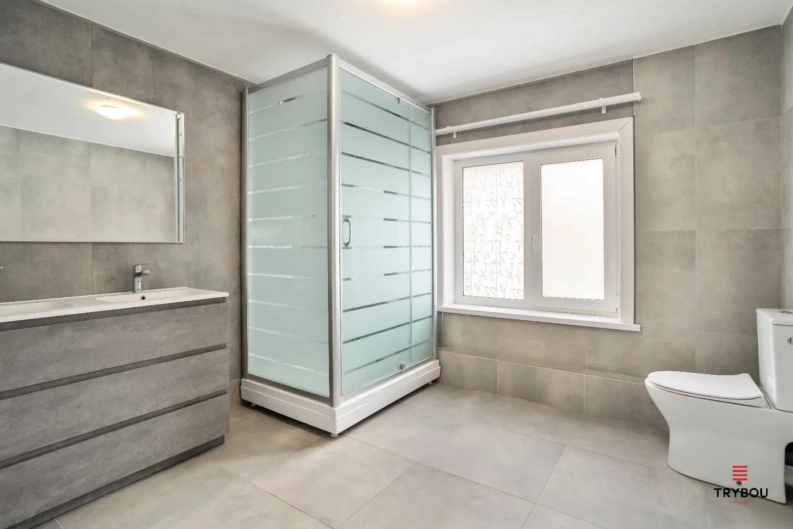 Verdiep: 3 ruime slaapkamers - badkamer met dubbele wastafel, toilet en douche.