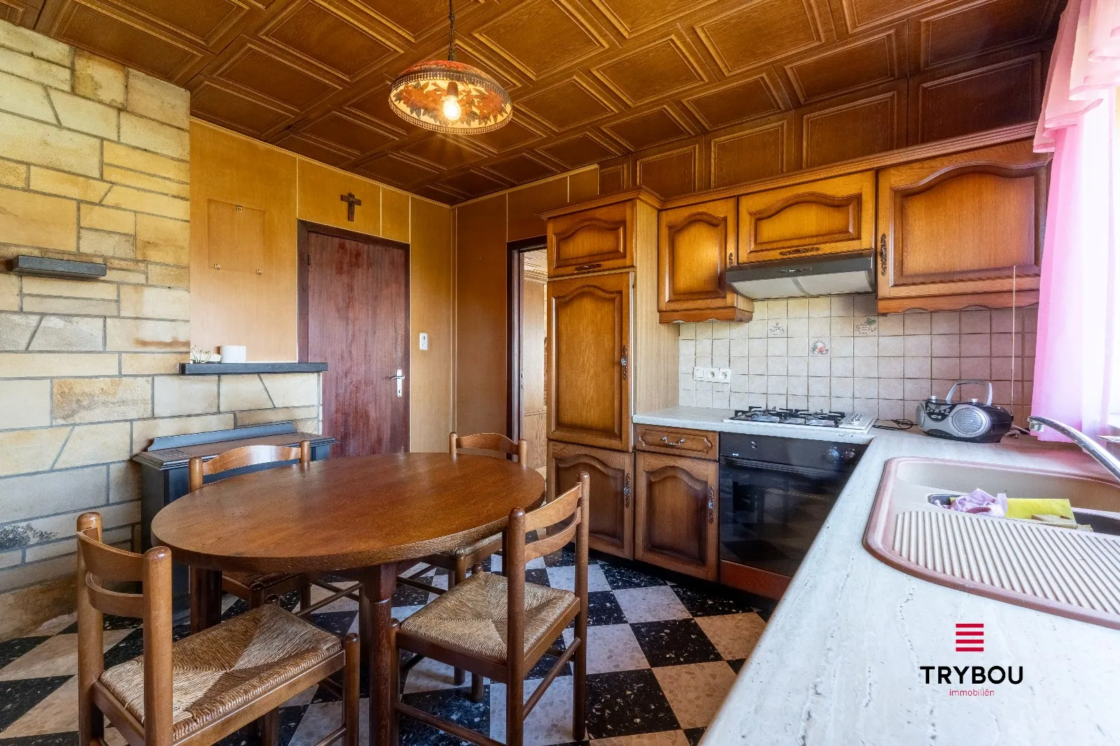 Welkom in deze karaktervolle woning die ruimte en potentieel biedt voor wie graag zelf de handen uit de mouwen steekt. Bij het binnenkomen kom je in een ruime inkomhal die toegang geeft tot de gezellige woonkamer met zithoek en eetplaats. Aansluitend bevindt zich de keuken, die ook voorzien is van een kleine eethoek.