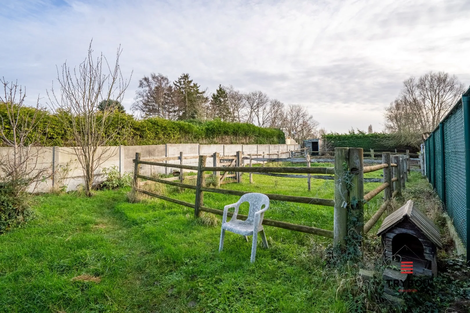 De volledig omheinde tuin van ca. 595 m² is zuidgericht en biedt een schitterend zicht op de omliggende hooivelden. Dankzij de aanwezige ponypiste en ruime tuin is dit een ideale woning voor wie houdt van het buitenleven, dieren of tuinieren.