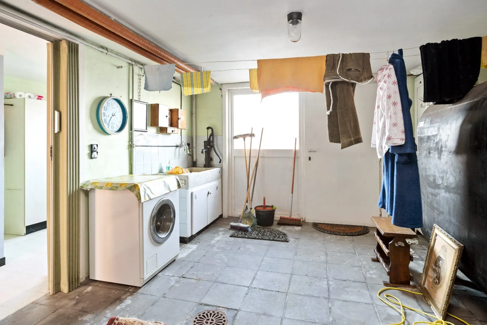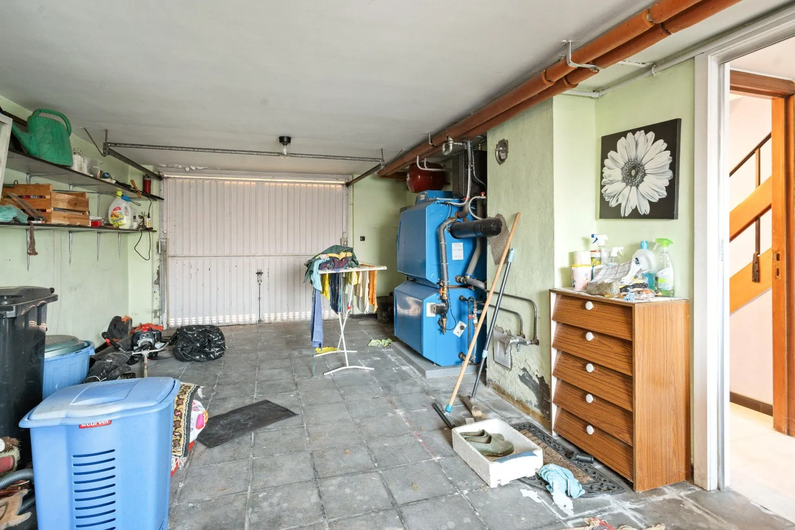Gelijkvloers: inkomhal - berging - ruime garage met toegang tot de tuin.