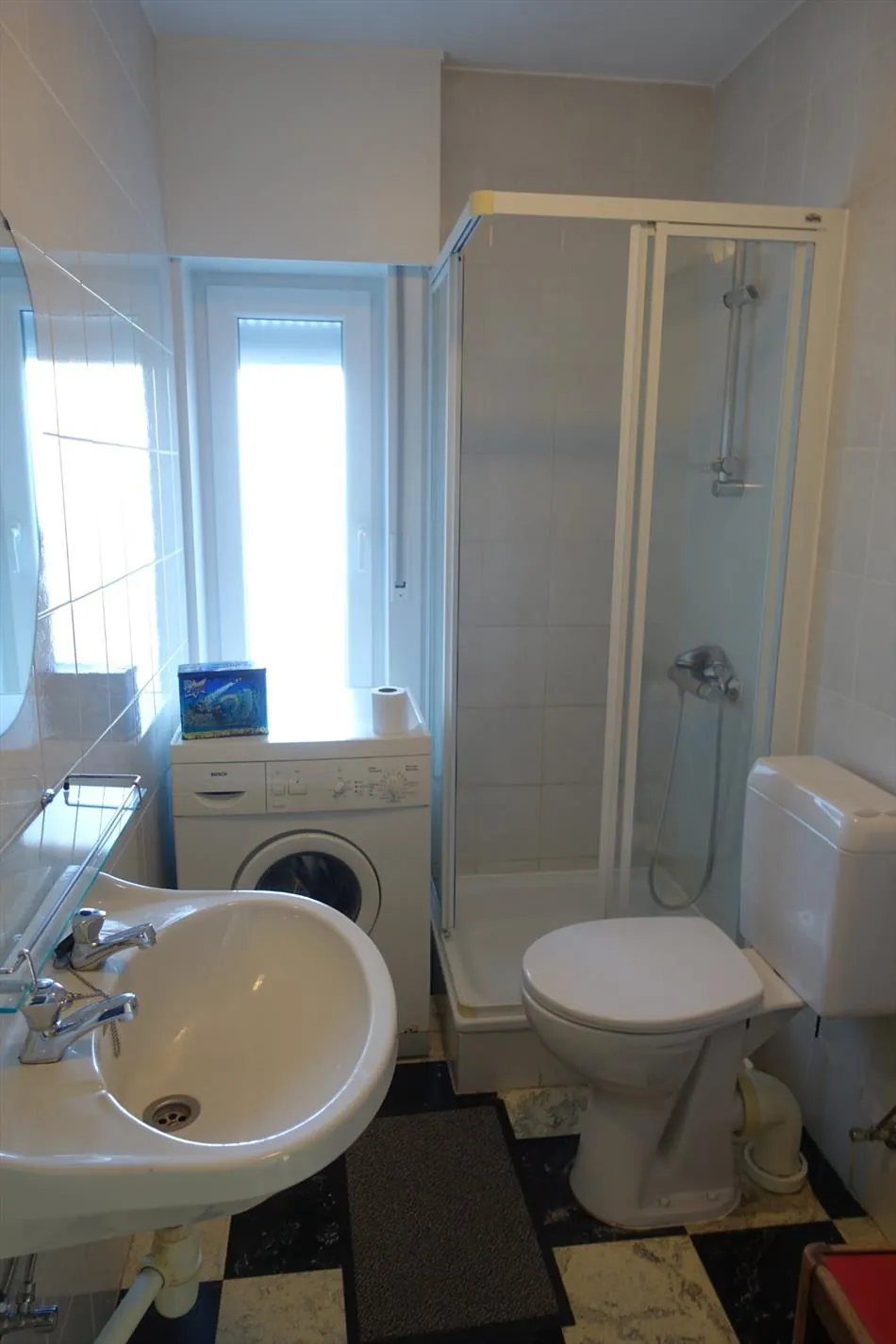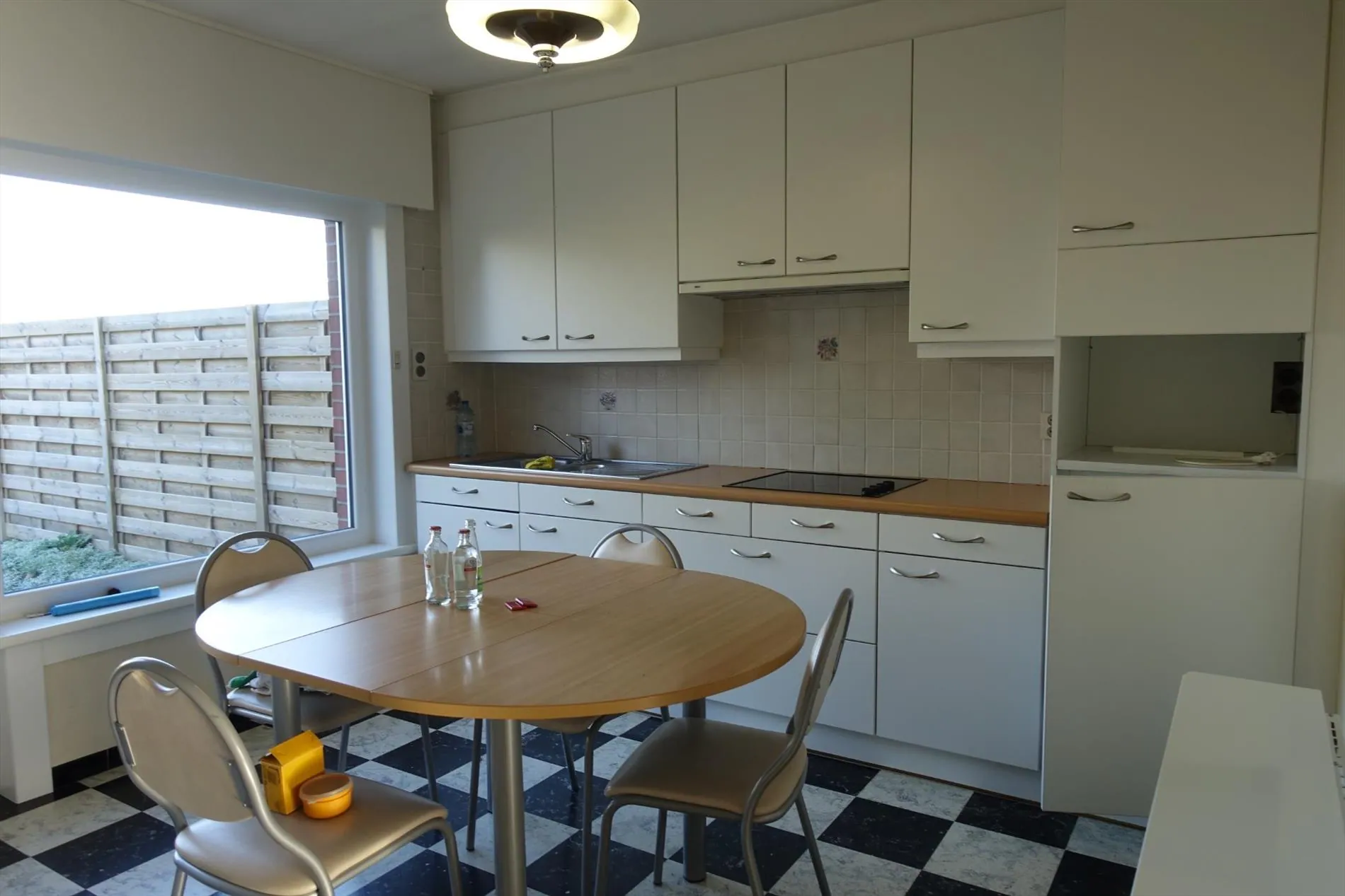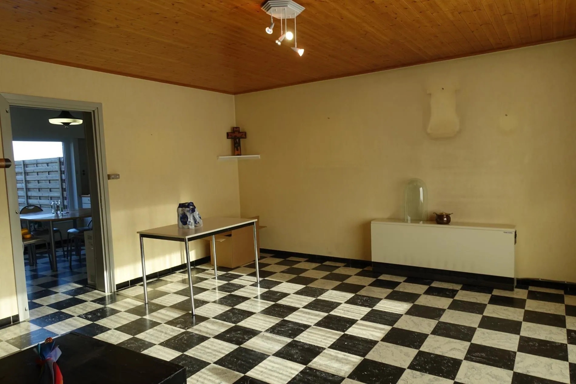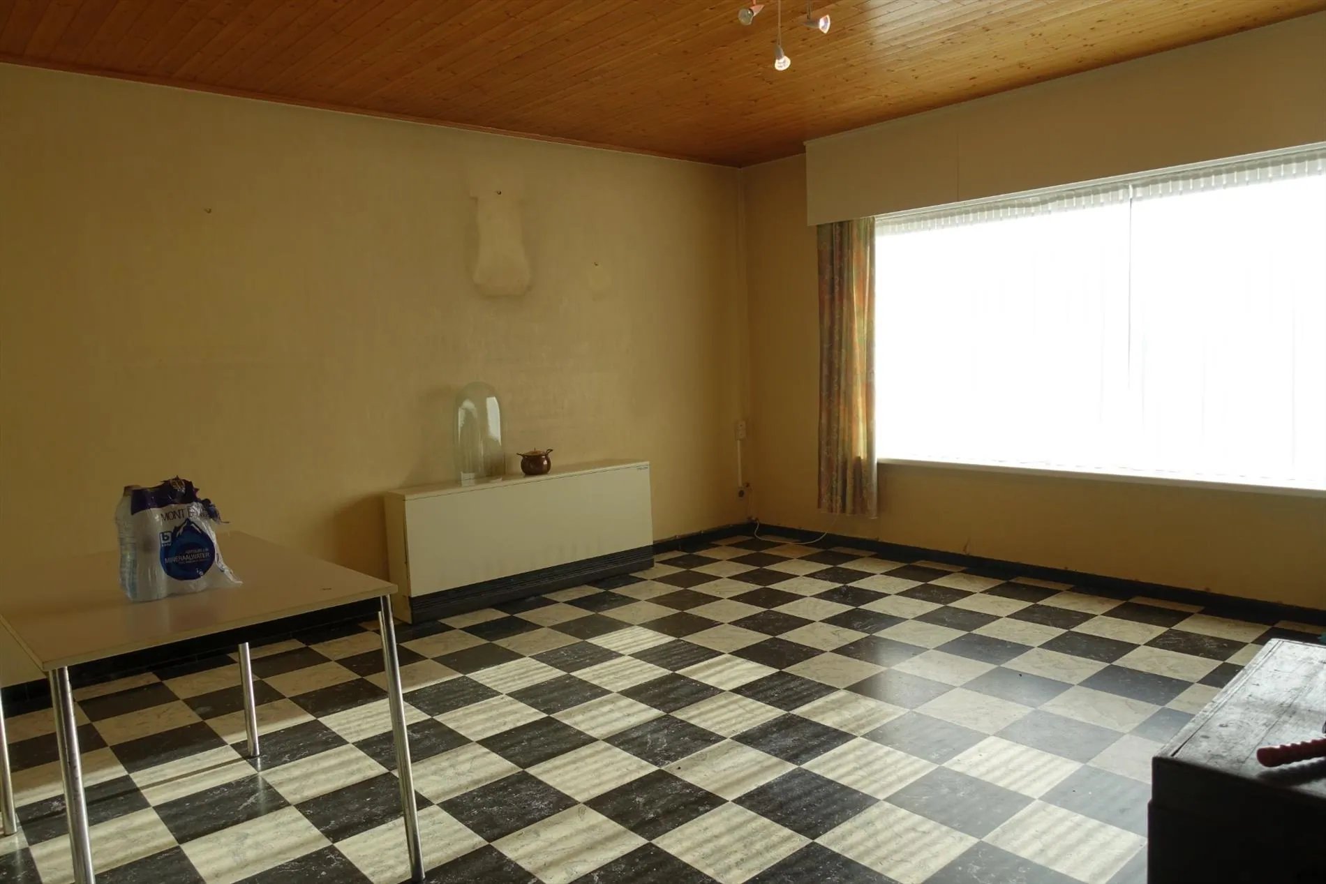 Gelijkvloers: inkomhal met berging en vaste trap richting verdieping - ruime garage met automatische sectionaalpoort - leefruimte - ingerichte keuken - gang - badkamer met wastafel, douche en toilet - ruime slaapkamer - tuinberging.