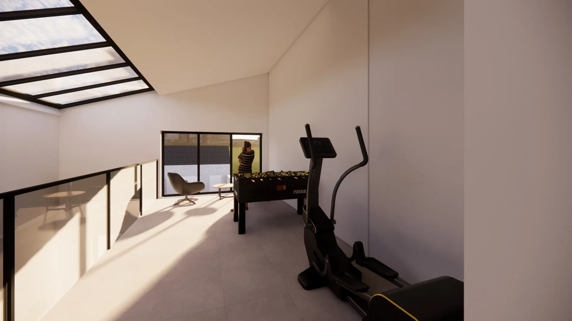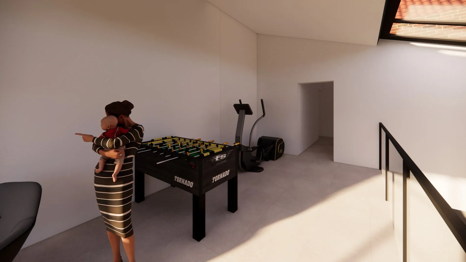 Verdieping: nachthal - badkamer - hobbyruimte - ruime slaapkamer