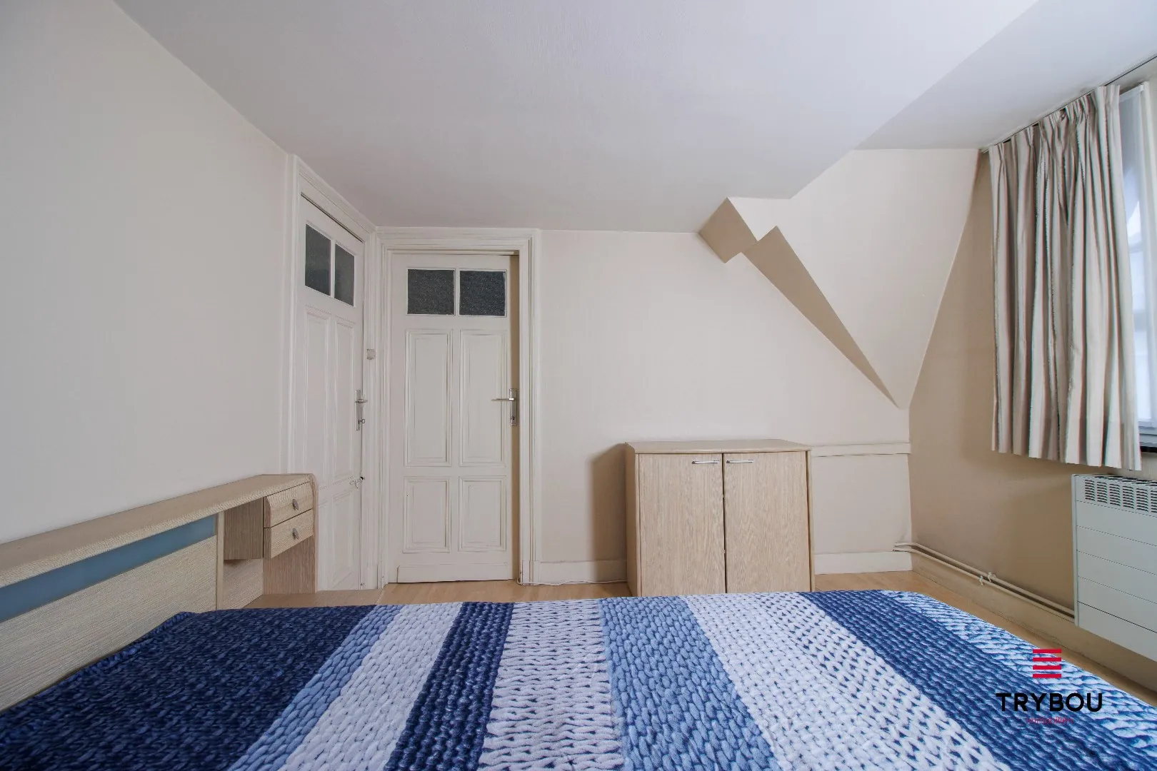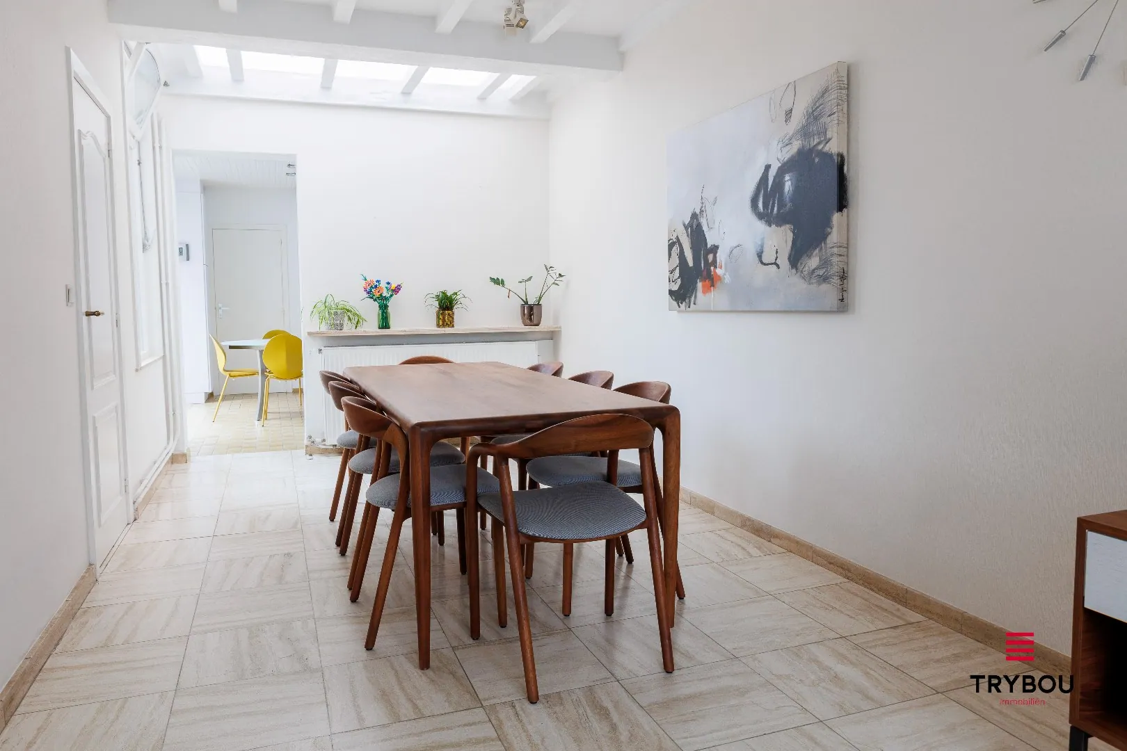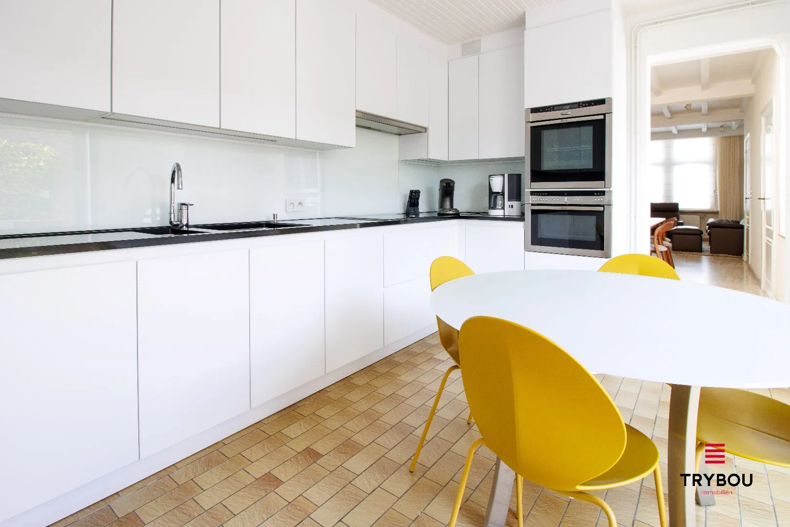 Gelijkvloers: inkomhal met trap naar verdiep - twee ruime woonkamers of extra ruimte voor vrij beroep - recentelijke keuken - aansluitende berging voorzien van douche en lavabo meubel - tuin voorzien van berging en ruim terras.