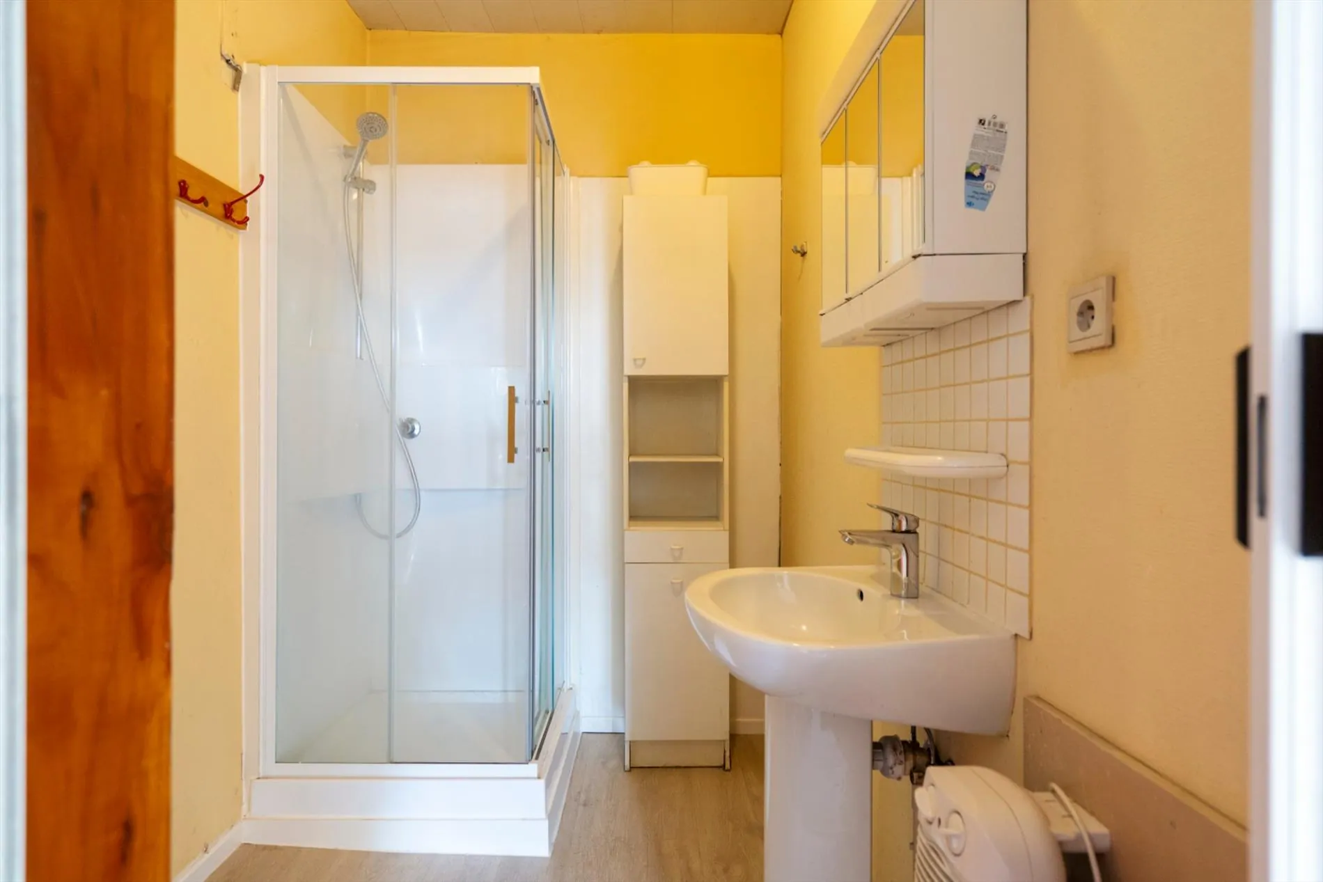 De duplex-studio op de verdieping bestaat uit een keuken, een badkamer, een eetkamer en een aparte slaapkamer.