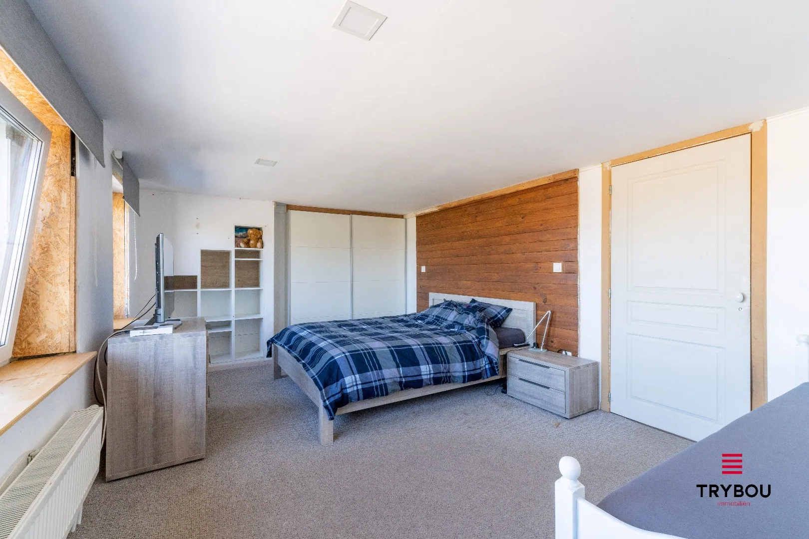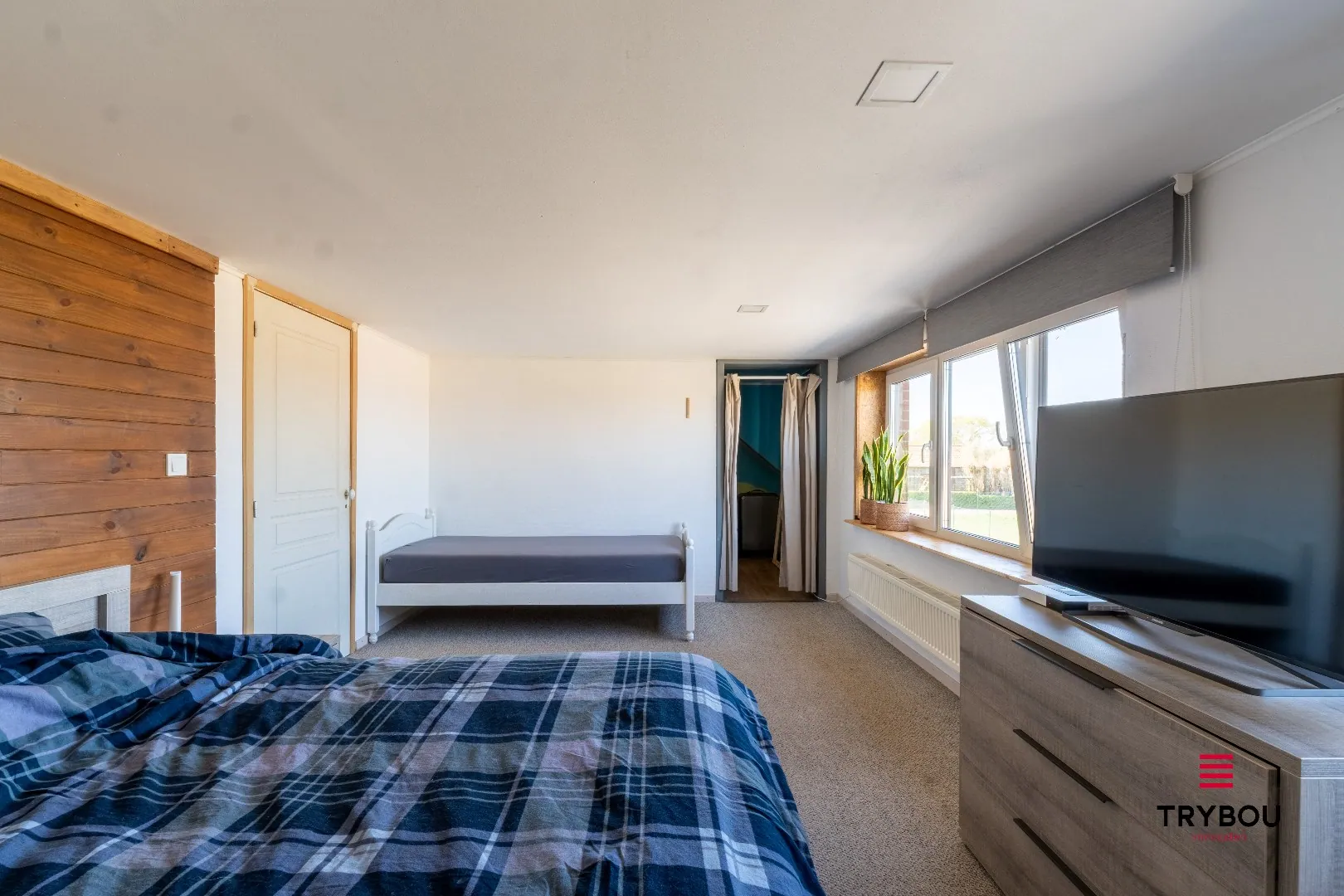 Welkom in deze verrassend ruime en lichtrijke woning die comfort en functionaliteit moeiteloos combineert. Bij het binnenkomen via de inkomhal bevindt zich aan de linkerzijde een eerste slaapkamer, ideaal als logeerkamer, bureau of kinderkamer.